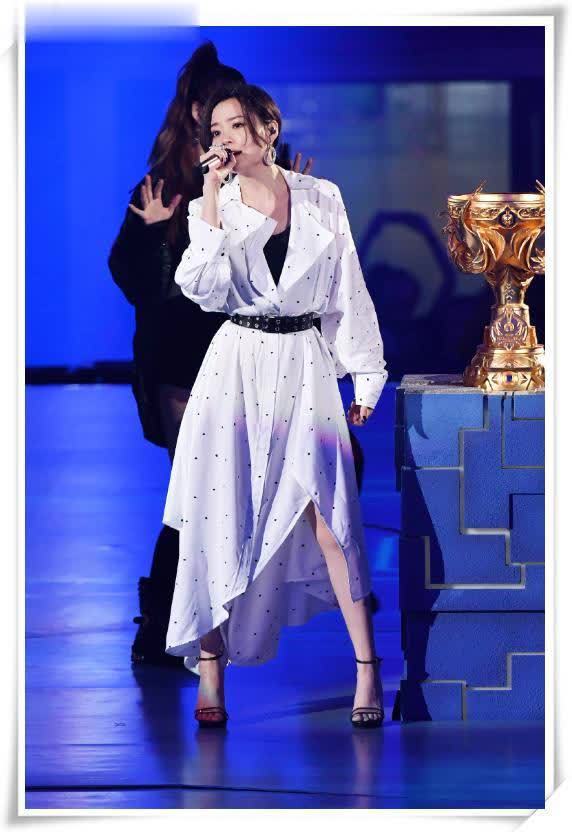 舞台上的张靓颖穿搭同样出色。白色衬衫搭配不规则波点裙,复古设计时尚感满满。黑色内搭与腰带秀出好身材,黑色细带高跟鞋提升比例,尽显舞台魅力。